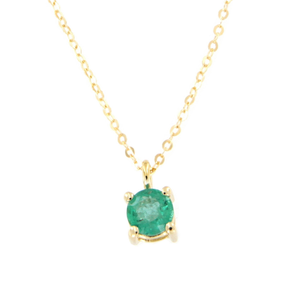 Colgante con Cadena con una Esmeralda Natural de 5 mm. en Oro de 18Kt. Disponible en Pendientes.