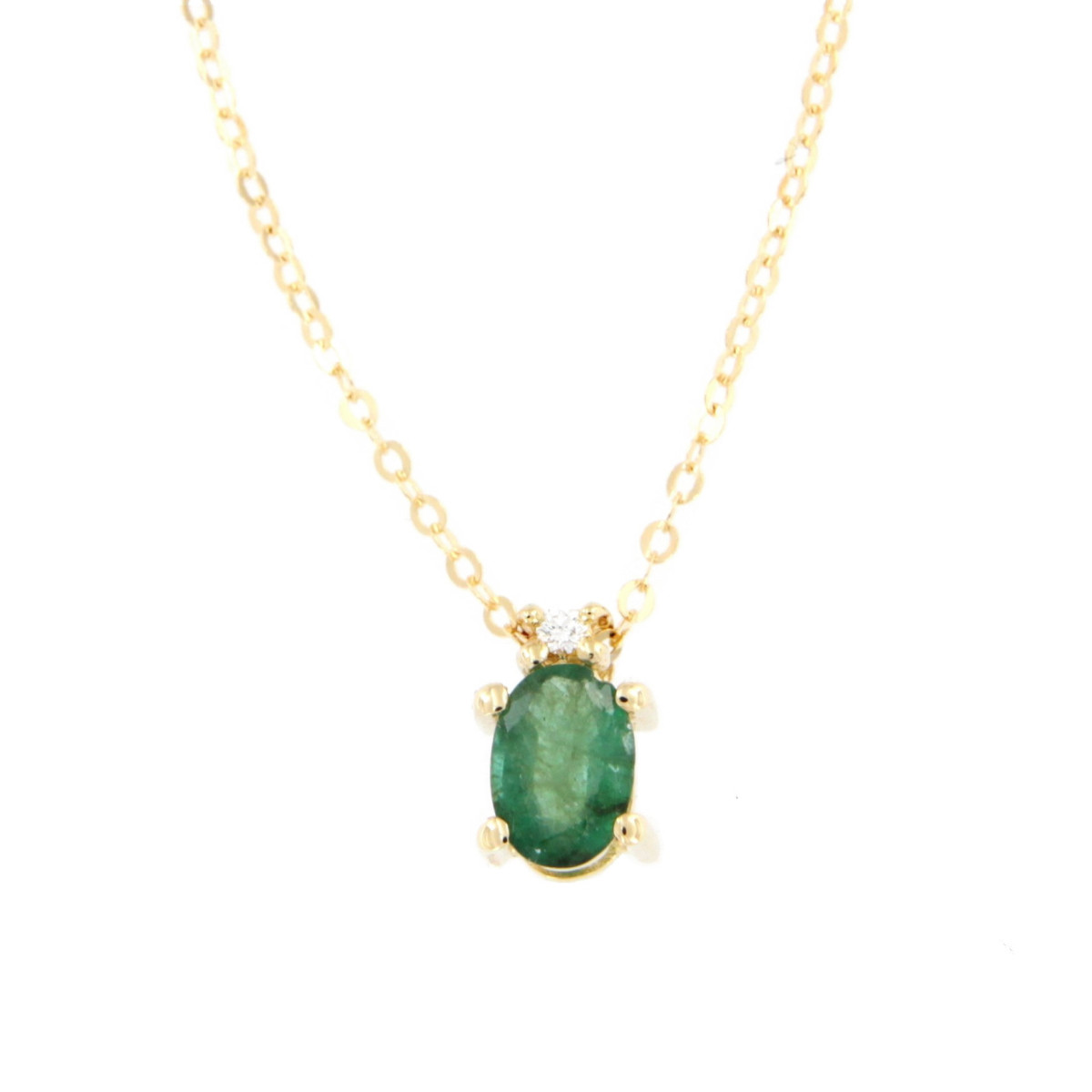 Colgante Garras en Microfusión con Galeria con Cadena en Oro de 18 Kt. con Esmeralda Natural de 6 x 4 mm y un Diamante Naturale Talla Brillante H SI 0,015 Quilates. Disponible en Pendientes.