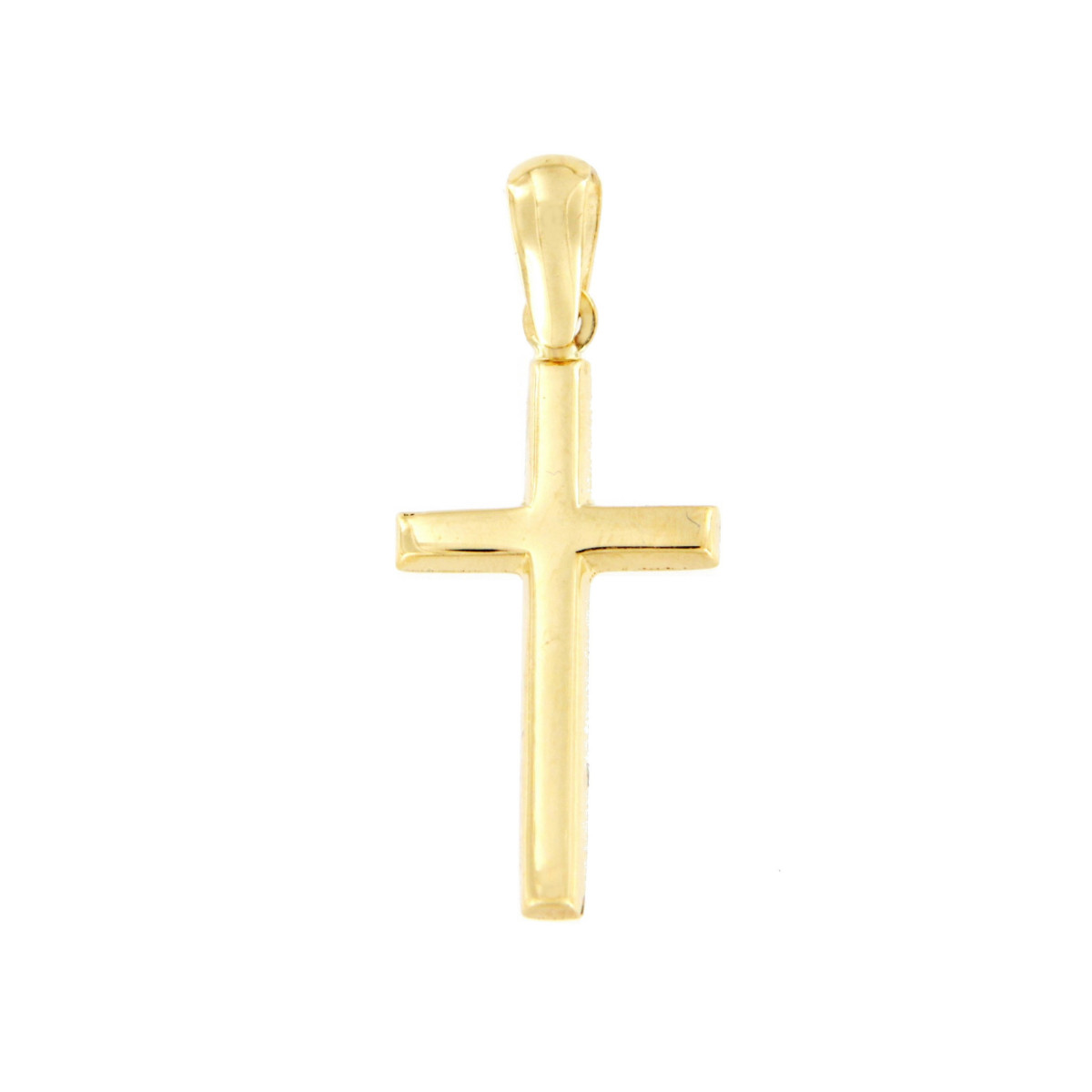 Cruz deTubo Plano Ancho de 2 mm. Medida sin reasa 18 x 10 mm. en Oro de 18Kt.