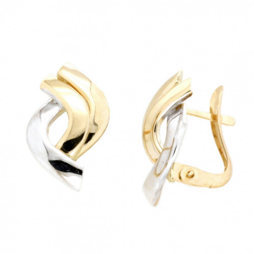 Pendientes Estampados de 16 x 8 mm. Fabricados en Oro Blanco y Amarillo 18 kt con Cierre Catalán.