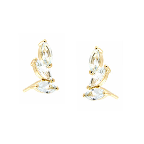 Pendientes Trepadores de 12 mm, Fabricados en Oro Amarillo de 18kt con Cierre de Presión y Engastados con 6 Aguamarinas Naturales Talla Marquís de 6 x 2,5 mm