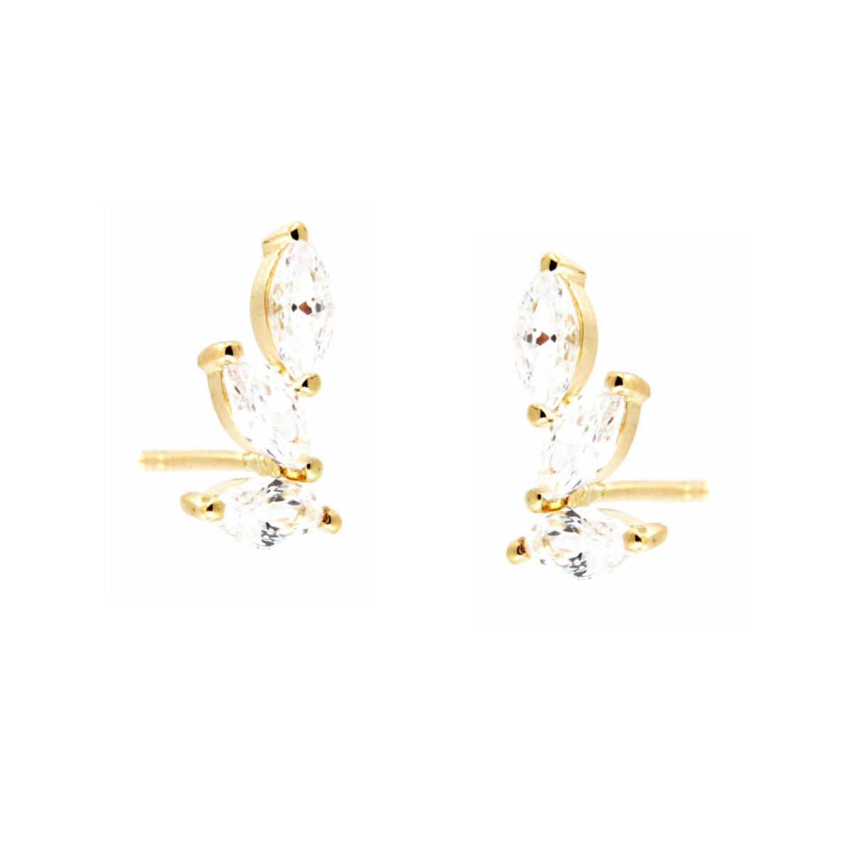 Pendientes Trepadores de 12 mm, Fabricados en Oro Amarillo de 18kt con Cierre de Presión y Engastados con 6 Circonitas Talla Marquís de 6 x 2,5 mm