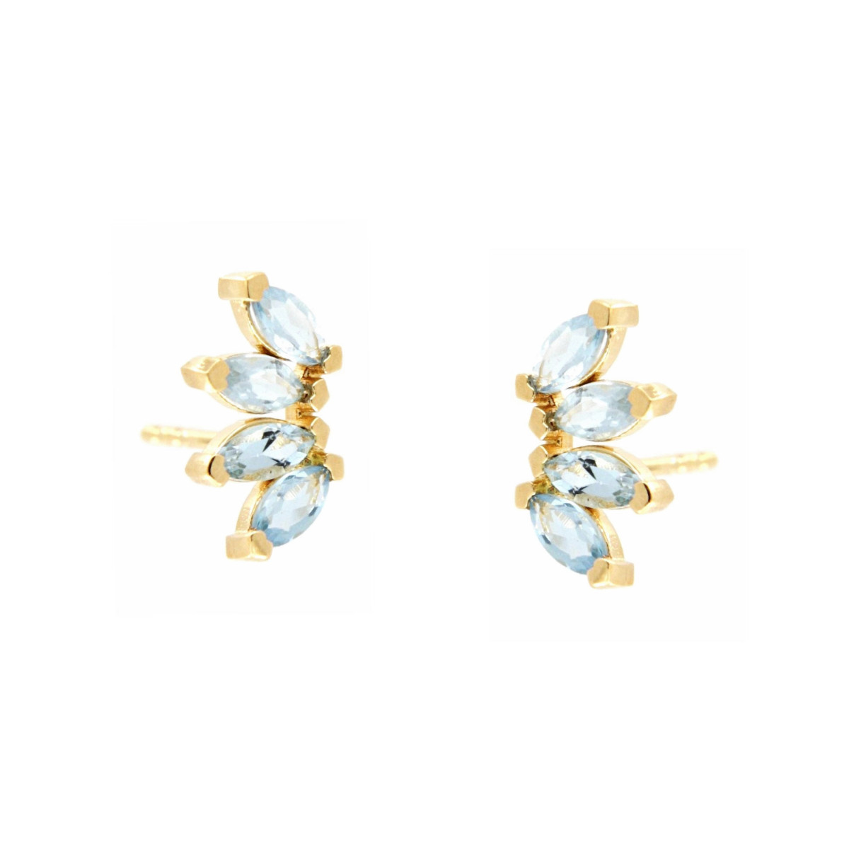 Pendientes Trepadores de 10 x 5 mm Fabricados en Oro Amarillo 18kt con Cierre de Presión y Engastados en Garras con Aguamarinas Marquise.