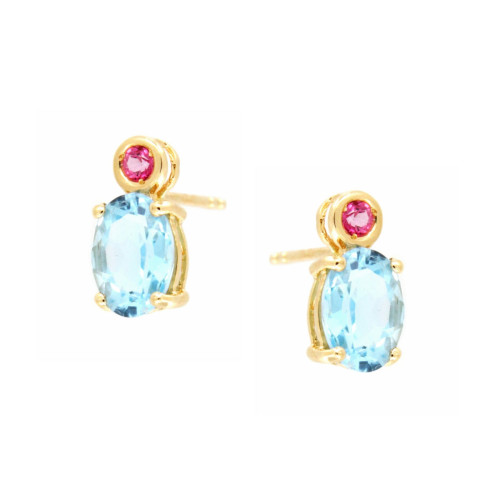 Pendientes con 2 Topacios Azules Naturales de 7 x 5 mm y 2 Topacios Rosas Naturales de 2 mm. Disponible en Colgante con Cadena 26-7788-TA-CAD y en Sortija 26-7787-TA-S.