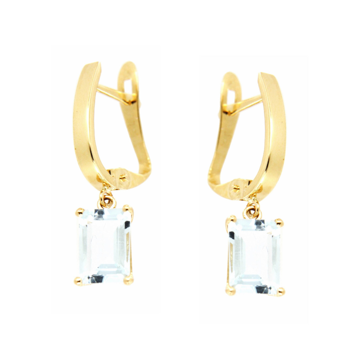 Pendientes Articulados con 2 Aguamarinas Naturales de 7 x 5 mm..en Oro de 18Kt. Largo 23 mm