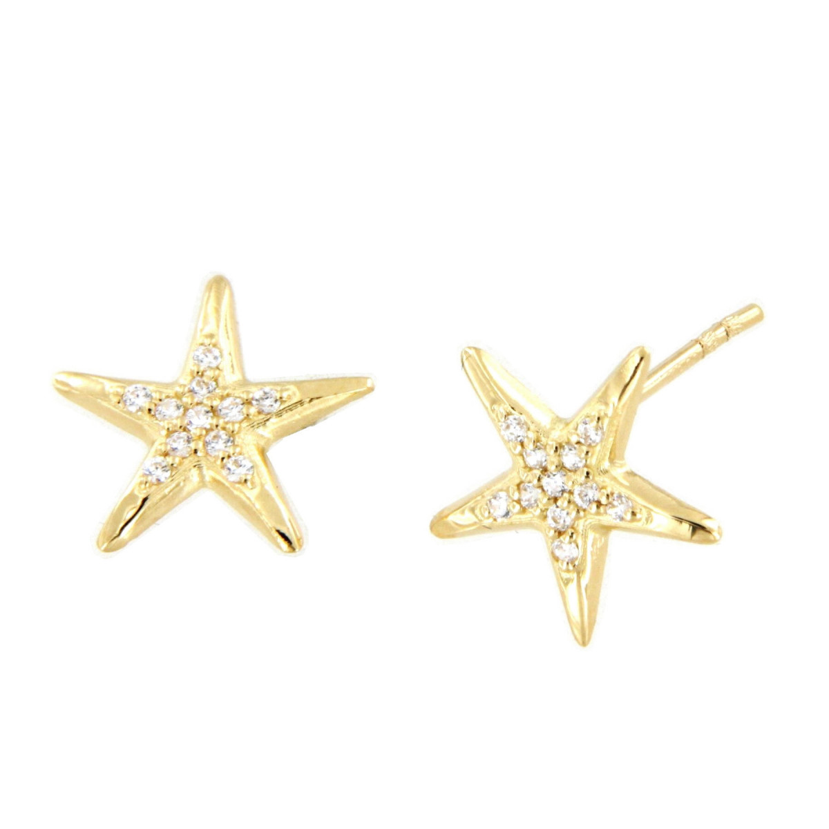 Pendientes Estrella de Mar de 10 mm Fabricada en Oro Amarillo de 18 kt con Cierre de Presión y Engastada con Circonitas