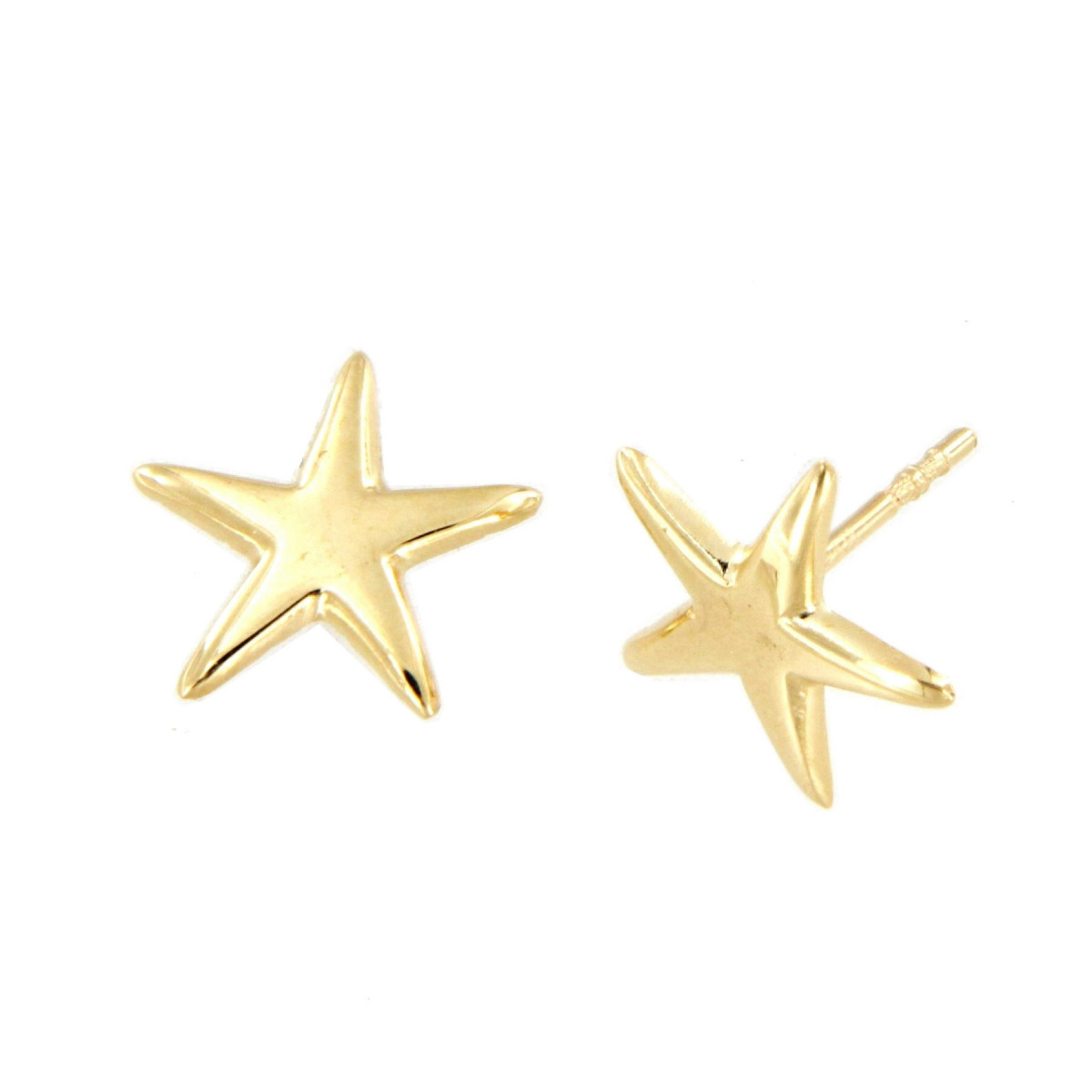 Pendientes Estrella de Mar de 10 mm Fabricada en Oro Amarillo de 18 kt con Cierre de Presión.