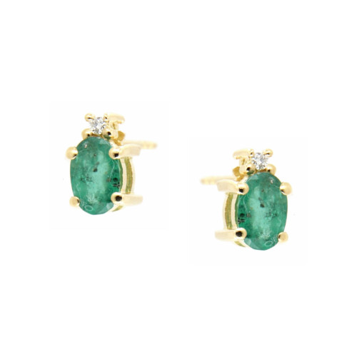 Pendientes Garras en Microfusión con Galeria en Oro de 18Kt. con Esmeraldas Naturales de 6 x 4 mm y dos Diamantes Naturales Talla Brillante H SI 0,03 Quilates. Disponible en Colgante con Cadena.