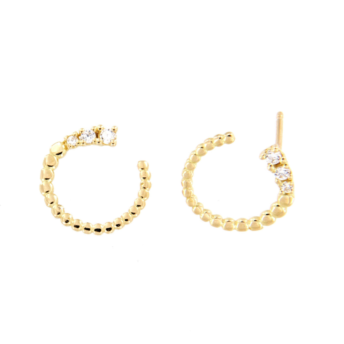 Pendientes de Aro de Medio Lado de 11 mm Fabricados en Oro Amamrillo 18 kt con Cierre de Presión y Engastados con Circonitas.