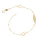Pulsera con Chapa, Flores de 6 mm y Perlas Chinas de 3,5 mm.Fabricada en Oro Amarillo 18 kt Largo 18 cm. reducción 16 cm.