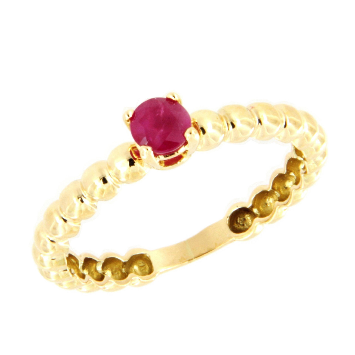 Sortija de 3 mm de Ancho con Un Rubí Natural de 4 mm Redondo en Oro de 18 Kt.