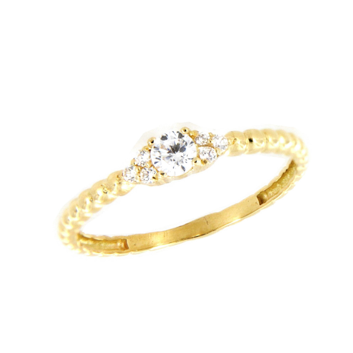 Sortija de 3,2 mm de Ancho, Brazo de 1,80 mm. Fabricada en Oro Amarillo 18 kt y Engastada Con Circonitas